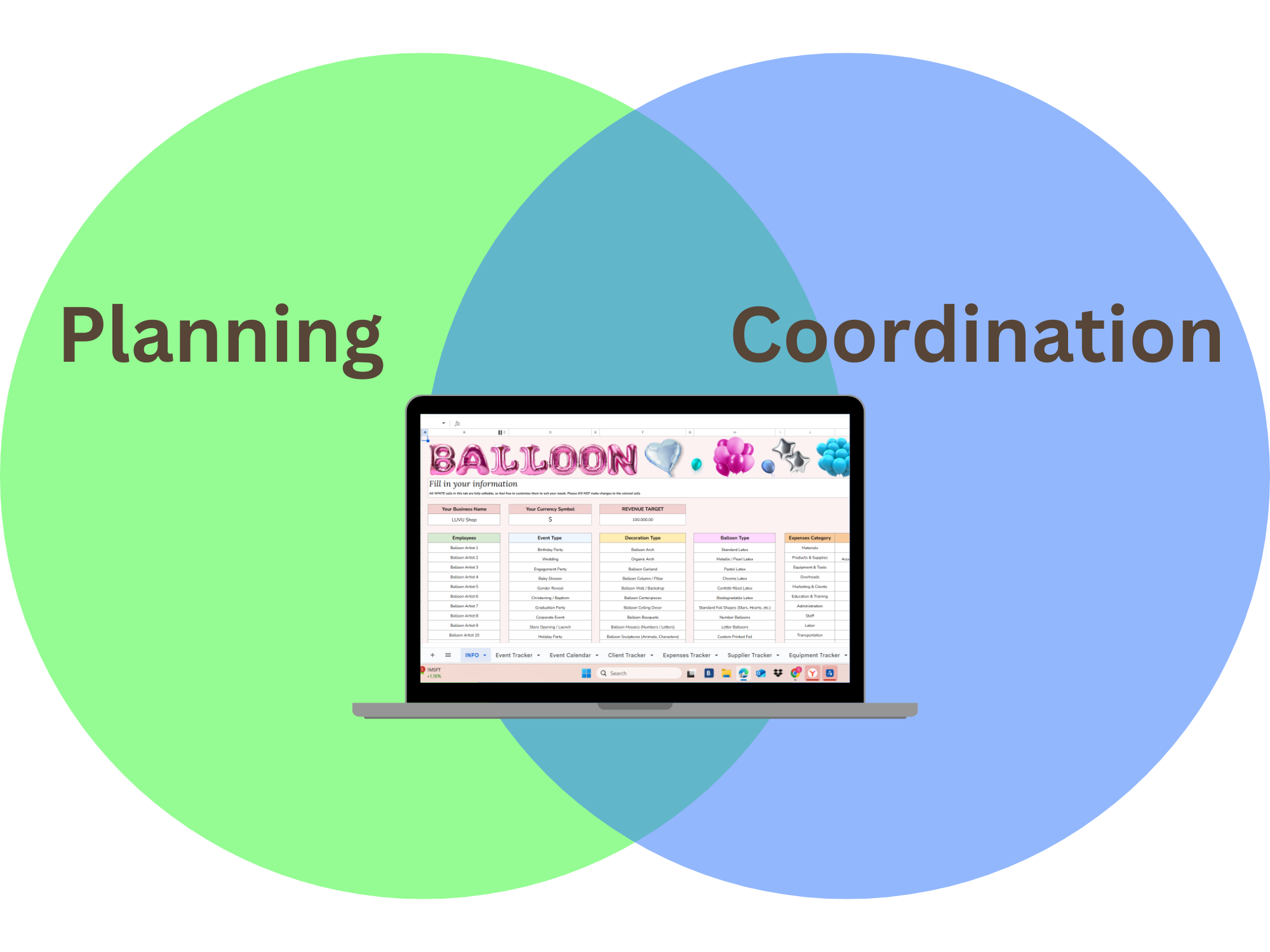 That’s why we created the Balloon Business Planner — your all-in-one Google Sheets system that organizes events, manages clients, tracks inventory, and keeps expenses under control. Less chaos, more time to grow your business.