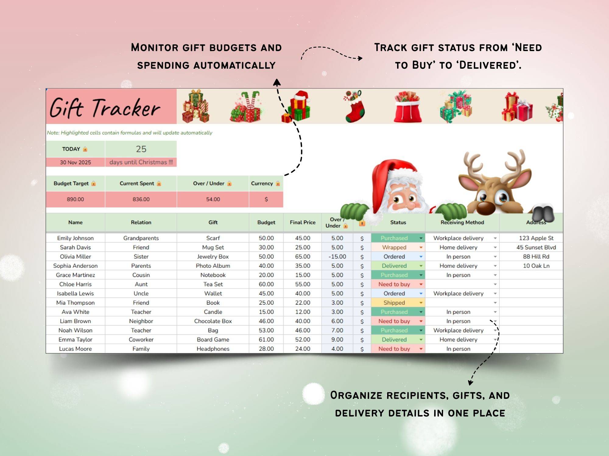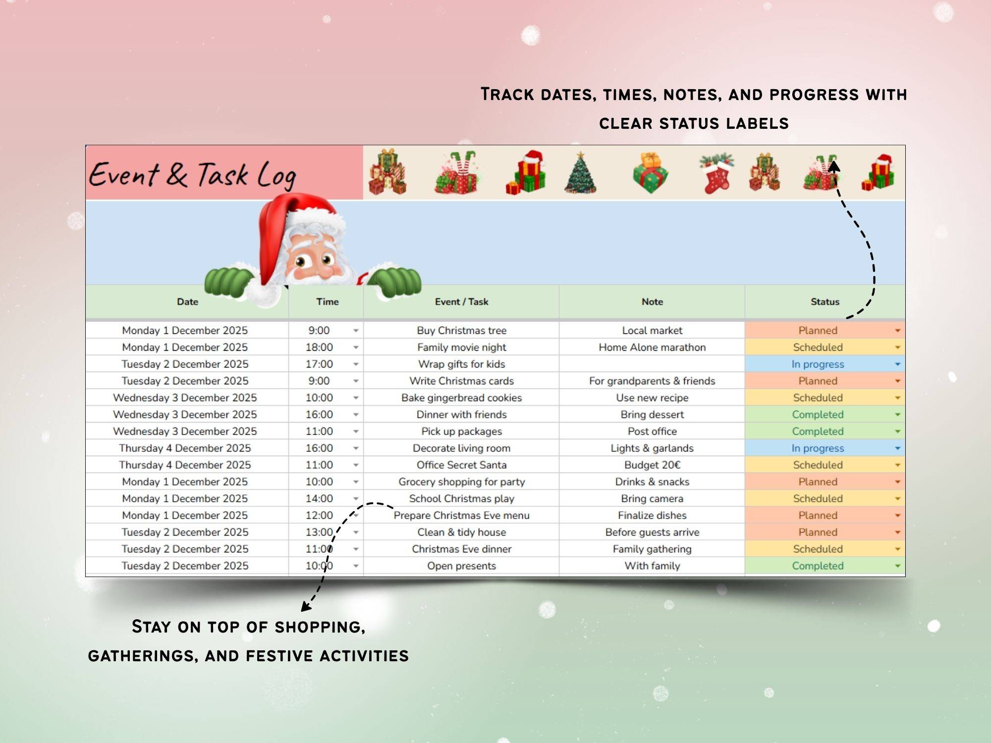 - Step 3: EnjoyFocus on celebrating the season β the planner handles the tracking and organization for you!