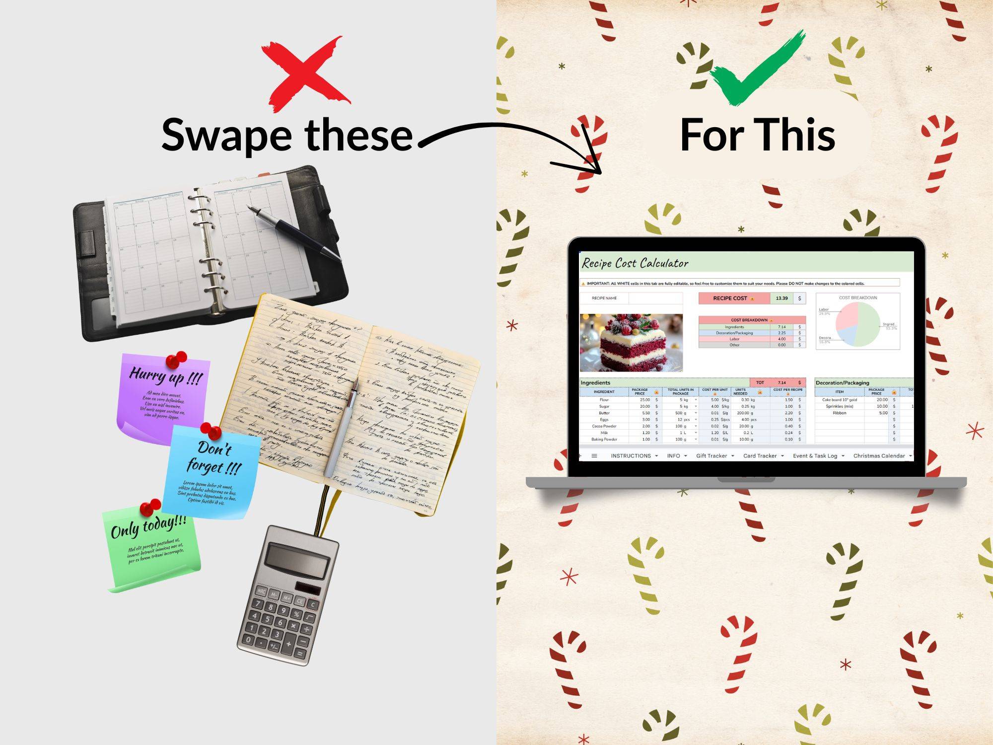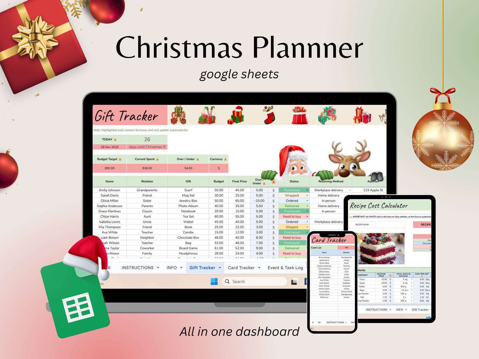 Imagine this⦠Instead of juggling random notes, scattered lists, screenshots, and last-minute reminders, you open one Christmas Planner Google Sheet and instantly see: