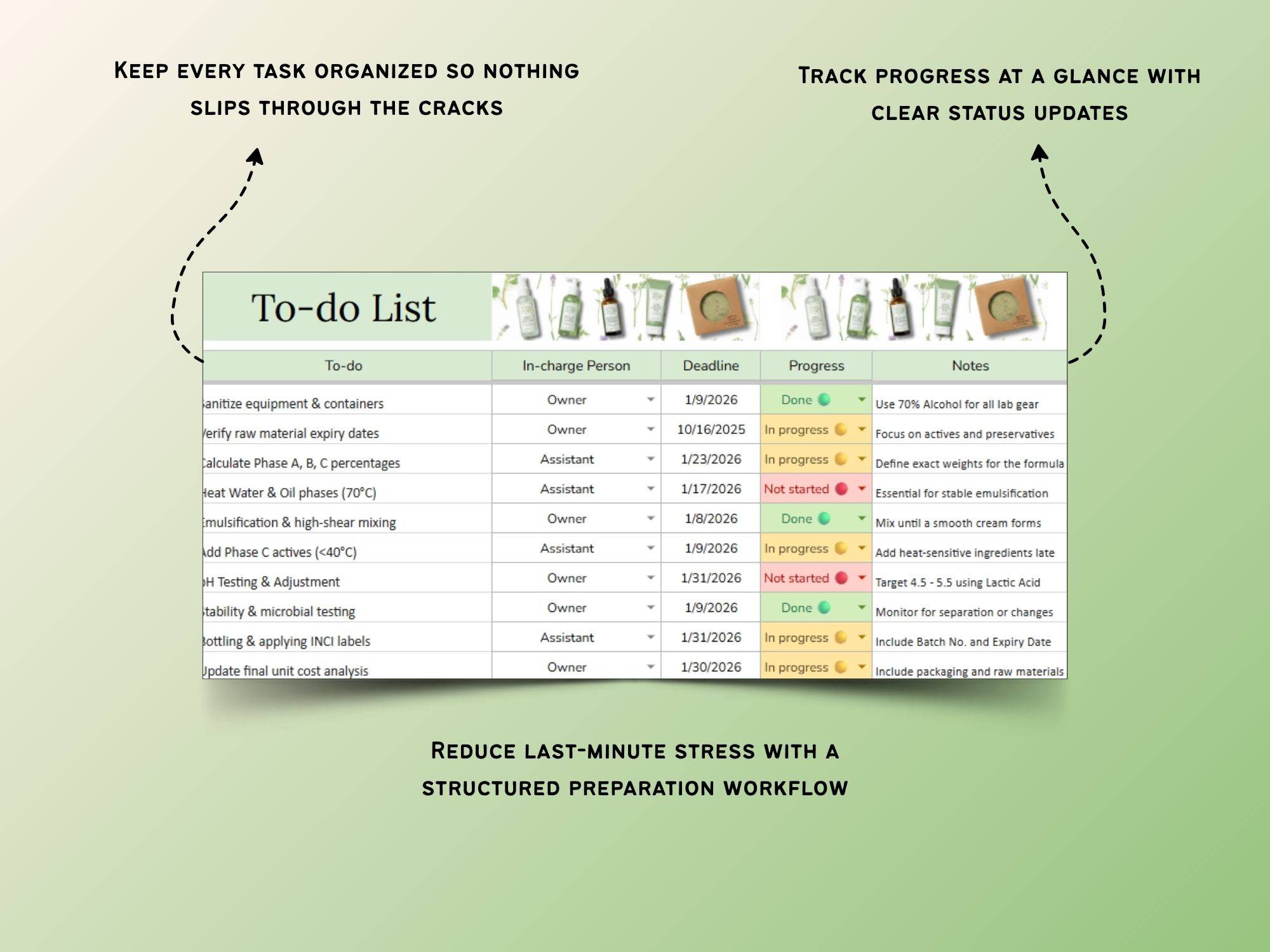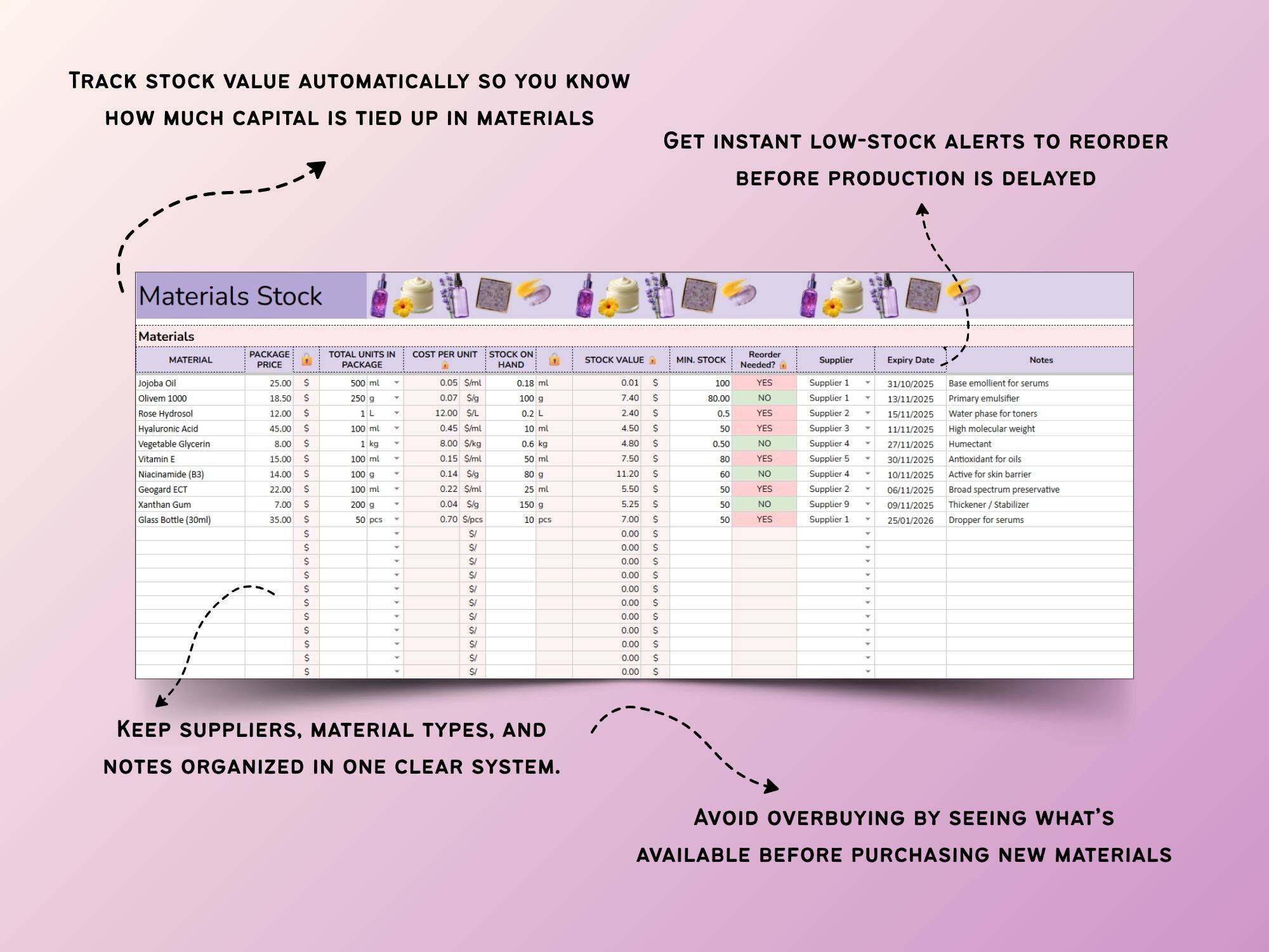 🧴 Less admin, more creating — so you can focus on formulating cosmetics, not spreadsheets