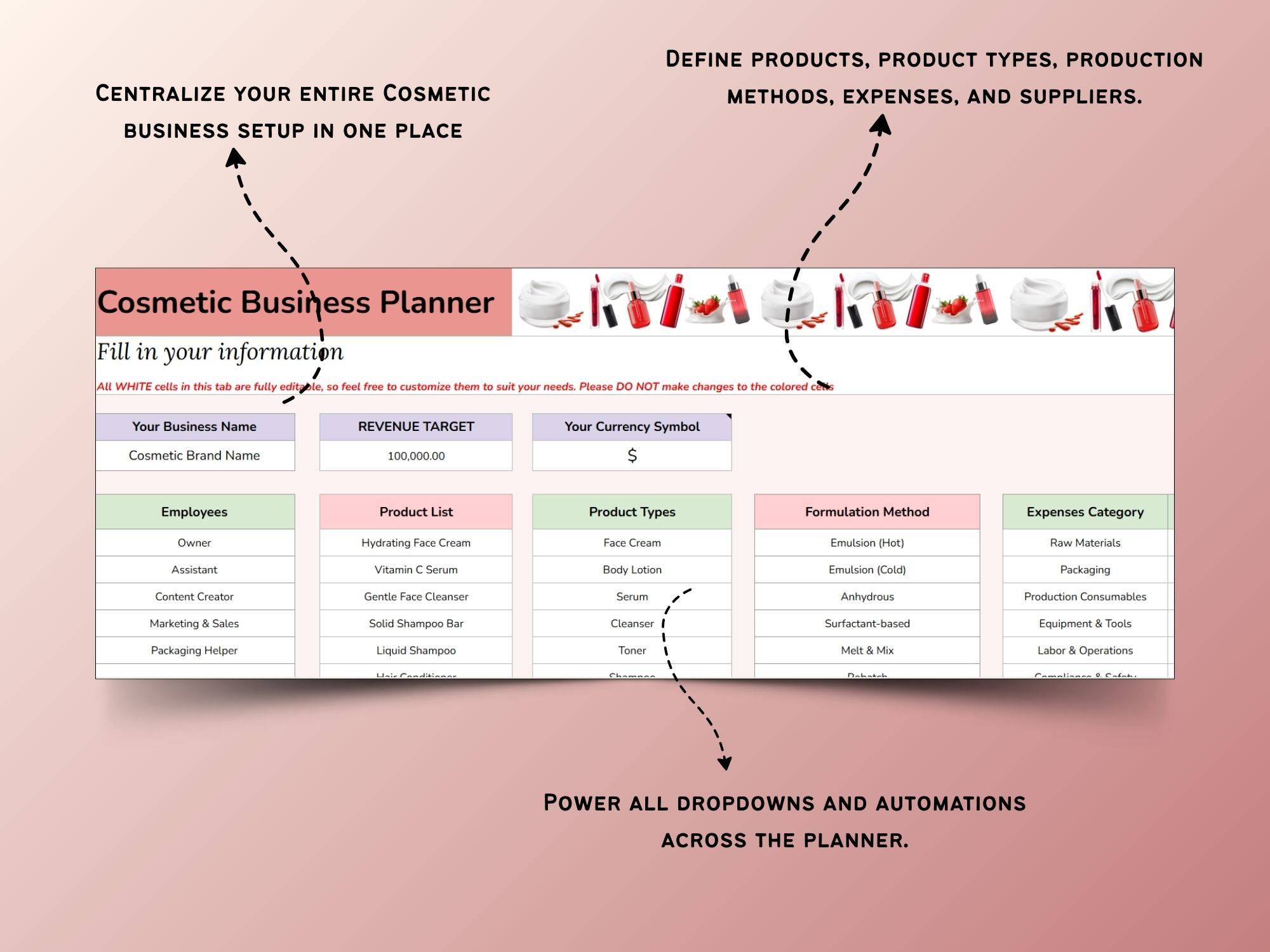✨ The Cosmetic Business Google Sheets ✨
