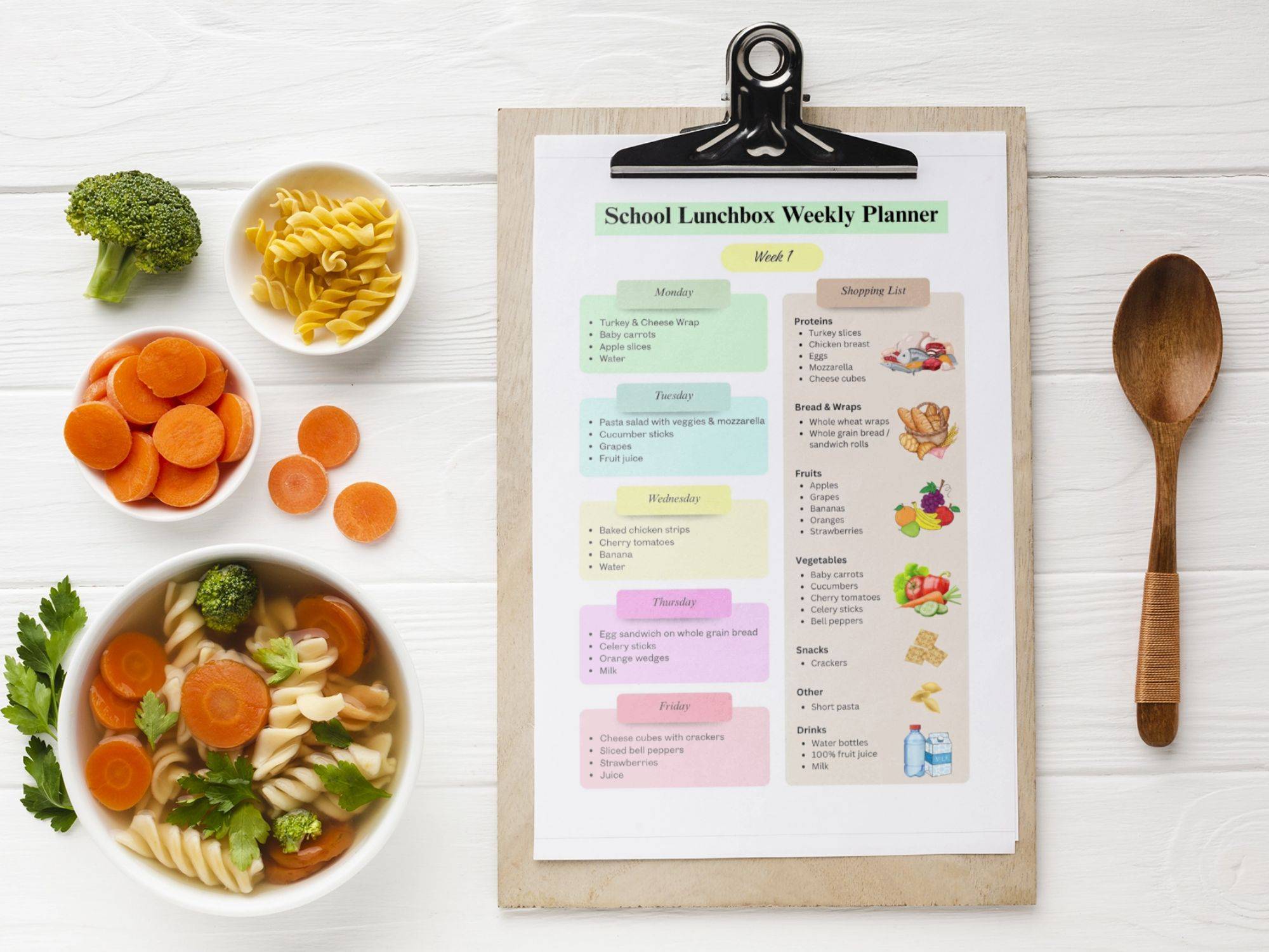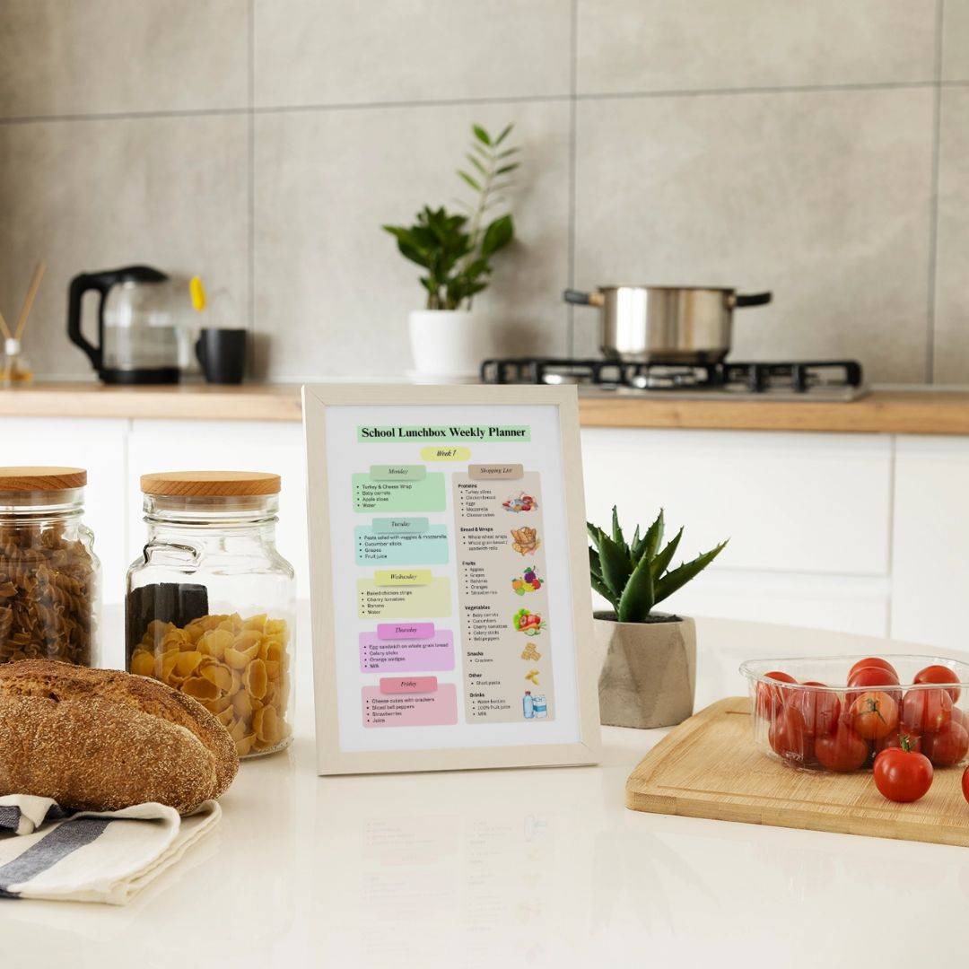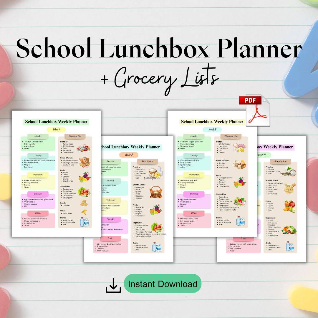 With the School Lunchbox Planner, you’ll always know exactly what to prepare, what to buy, and how to keep your child’s lunchboxes balanced and stress-free—for a whole month!