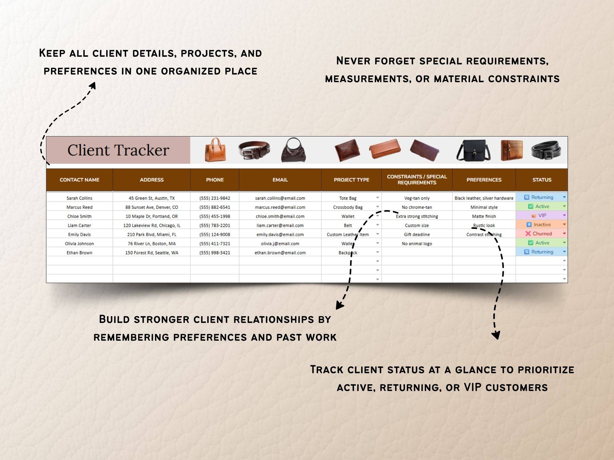 Imagine thisβ¦Instead of stressing over wasted leather, wrong cuts, missing hardware, changing specs, or last-minute client tweaks, you open one Google Sheet and see: