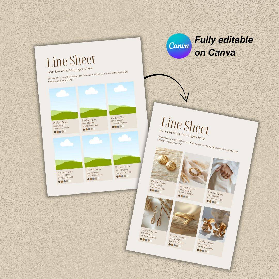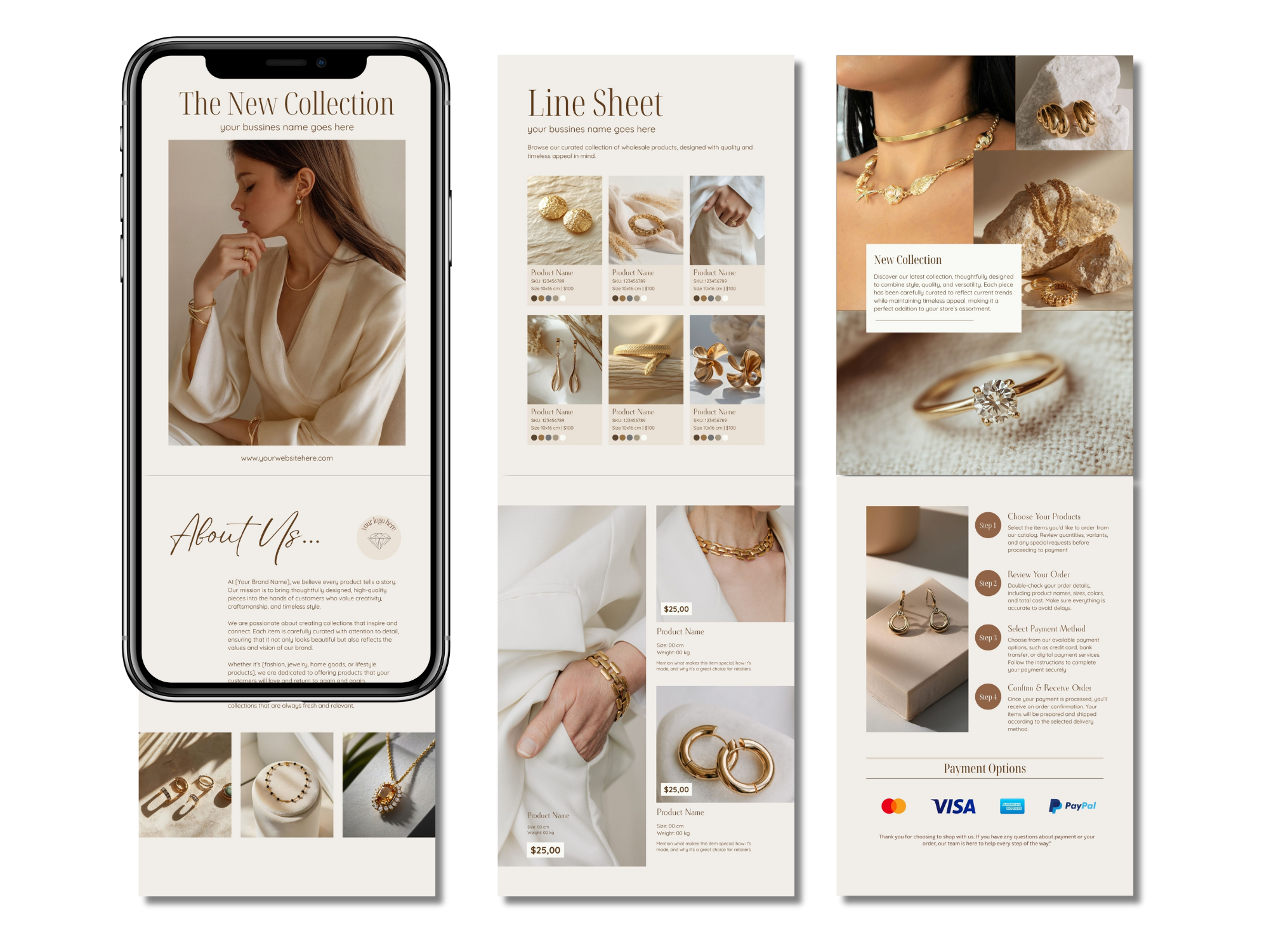 Yay! After you enter your details we will email Wholesale Line Sheet Template right away. You can then easily customize it to match your brand by adding your own products, images, and colors — no designer needed!