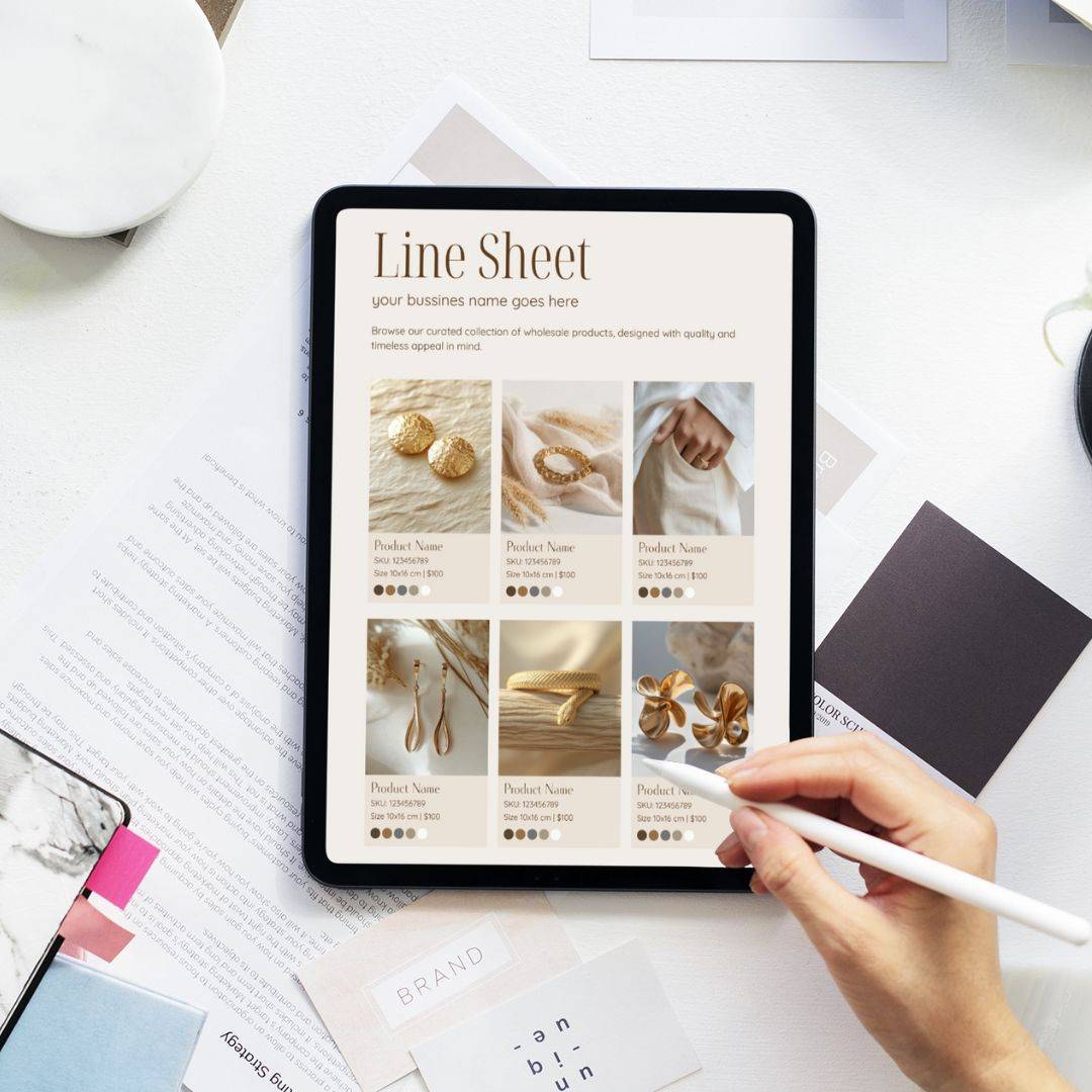 - Step 3: UseShare your professional line sheet anytime — keep it handy to send to buyers, boutiques, or retailers whenever they ask.”